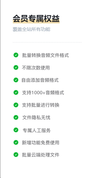 您可以放心转化高质量音频文件,而不必担心转化过程中会损害音频的原始质量,确保最终呈现出的音频仍然保持着原始的音乐魅力。支持批量处理,提升效率。